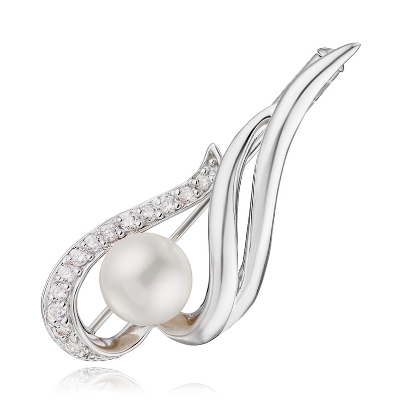 Брошь серебряная с жемчугом и фианитами арт. bp-1199