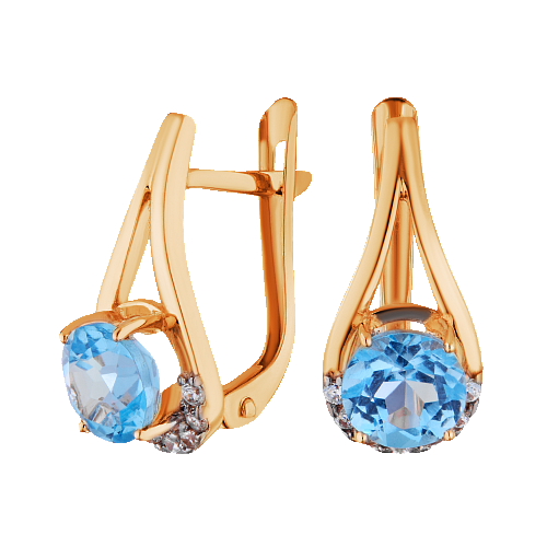 Серьги золотые с фианитами и топазом Swiss Blue арт. 1725239тсб