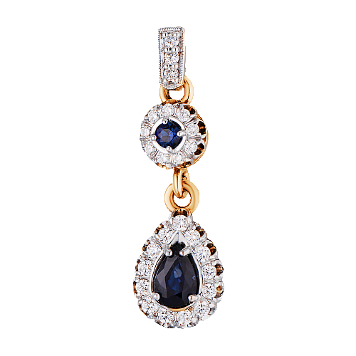 Подвеска золотая с бриллиантами и сапфиром арт. 3232393/1с