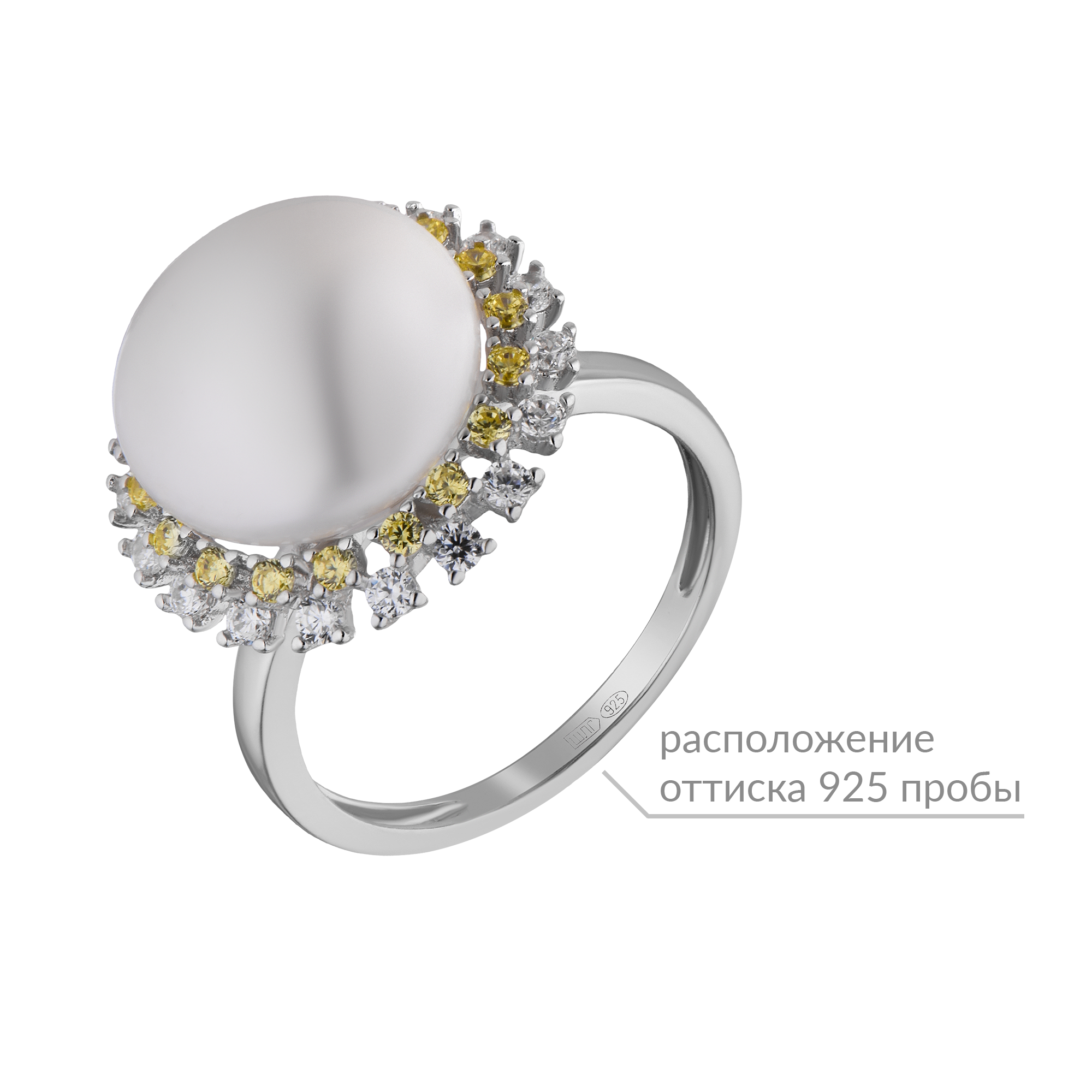- Кольцо арт.21111268/9-13.0 р.18,5 Жемчуг д.13,0 Фианит