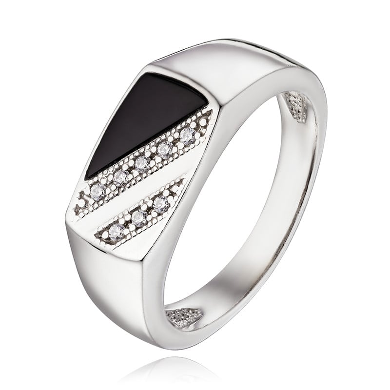 Печатка серебряная с обсидианом и фианитами арт. 2113021/9