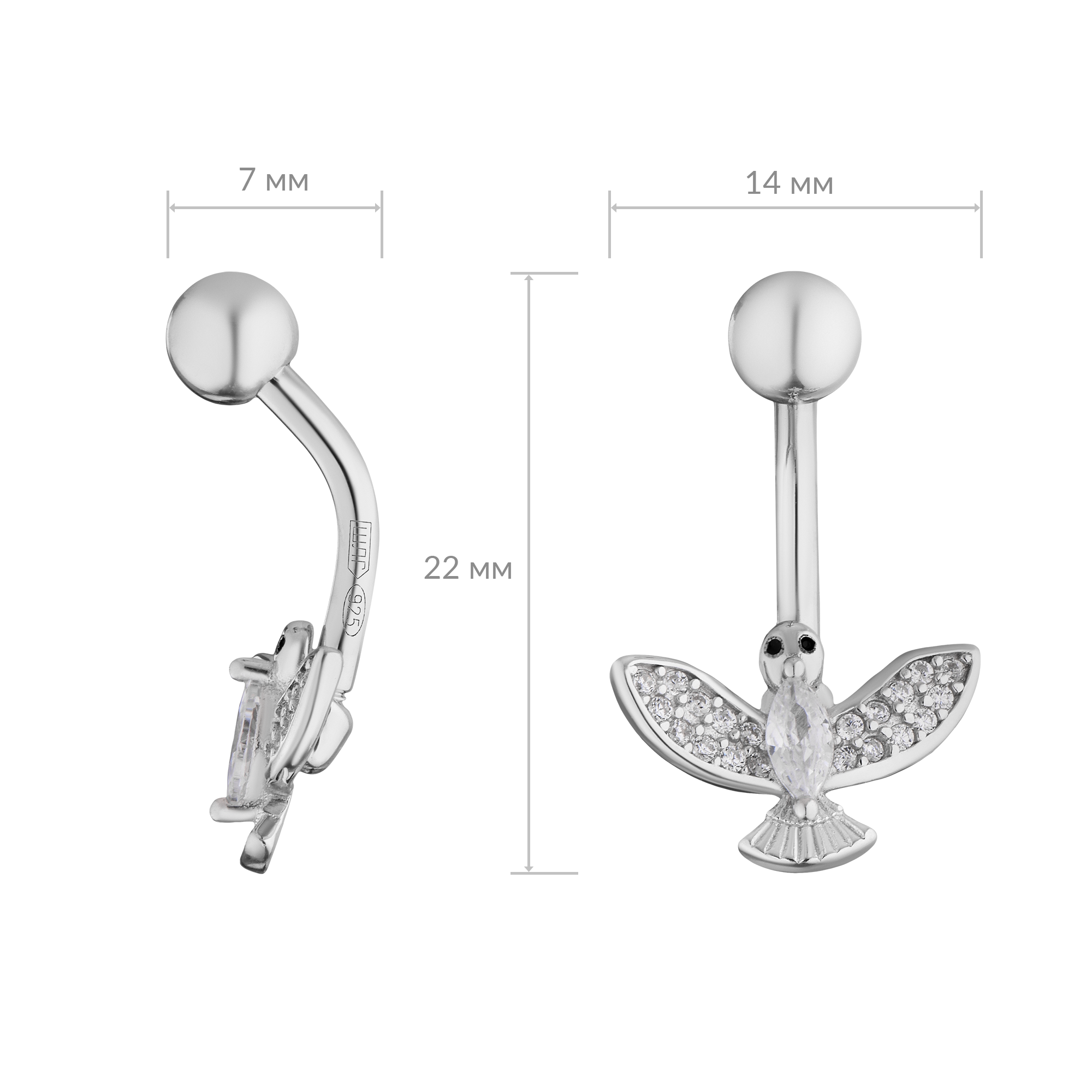 - Серьги арт.21211880/9 Пирсинг Фианит