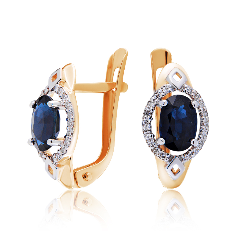 - Серьги арт.1225908с 36 Бр Кр17 2/3А-0,080 2 Сапфир Ов6*4 3/3-1,120