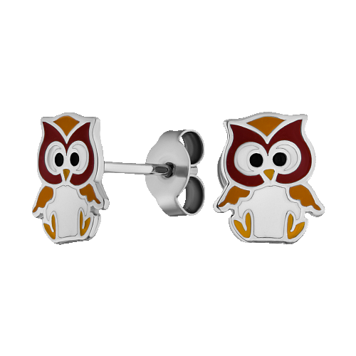 Серьги серебряные с эмалью "Совы" арт. 2029745/9бг-жг-охг-чг-шг