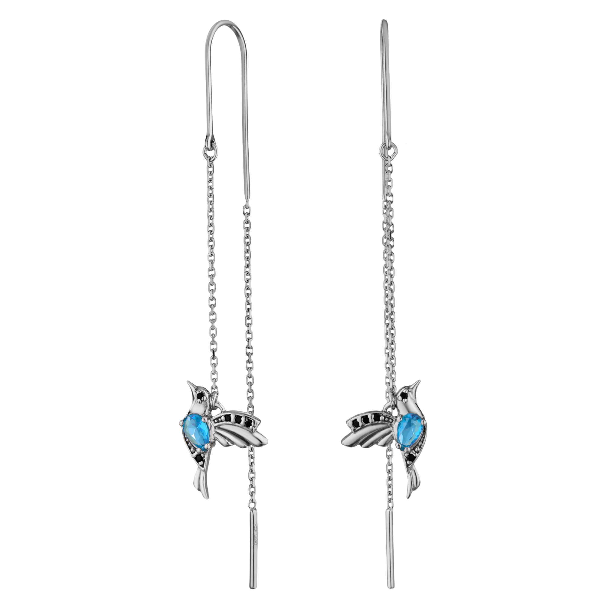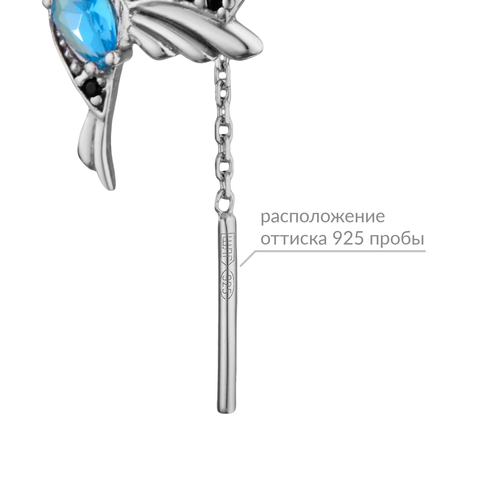 Серьги серебряные "Птица" с топазом и фианитами арт. 2729878/9ттс