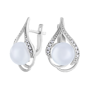 Серьги серебряные с жемчугом и фианитами арт. 2122314/9-9,0