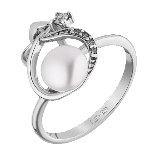 Кольцо серебряное с жемчугом и фианитами арт. 2114954/91-8,0