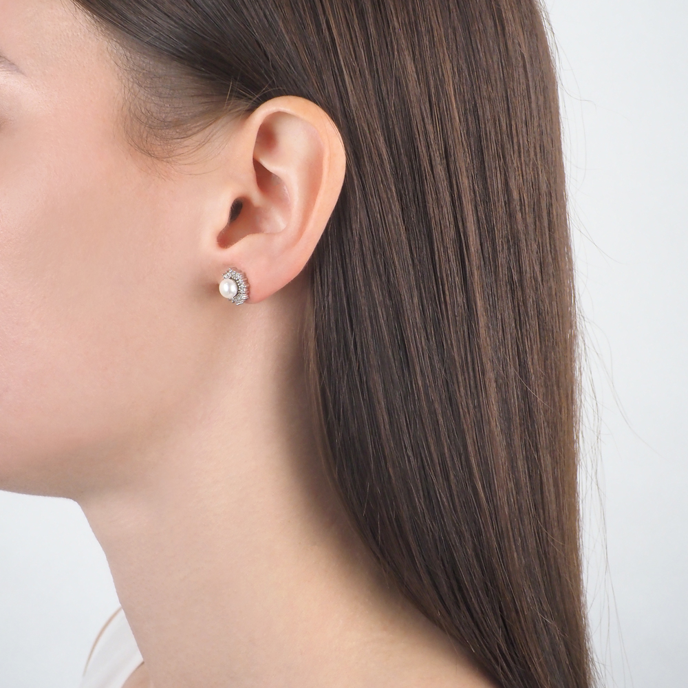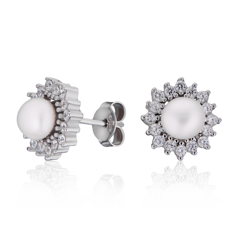 Серьги серебряные с жемчугом и фианитами арт. 2129154/9-5-5,5