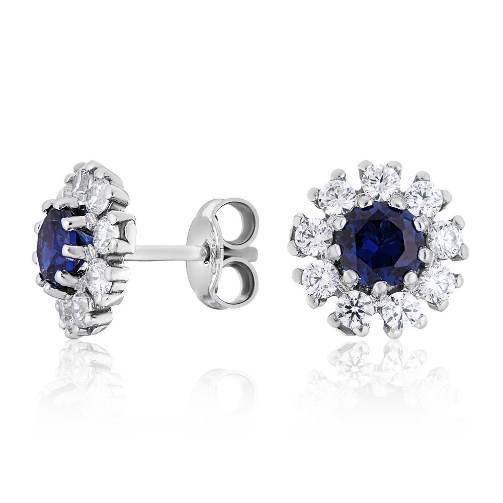 Серьги серебряные со шпинель сапфиром и фианитами арт. 2725867/93шс