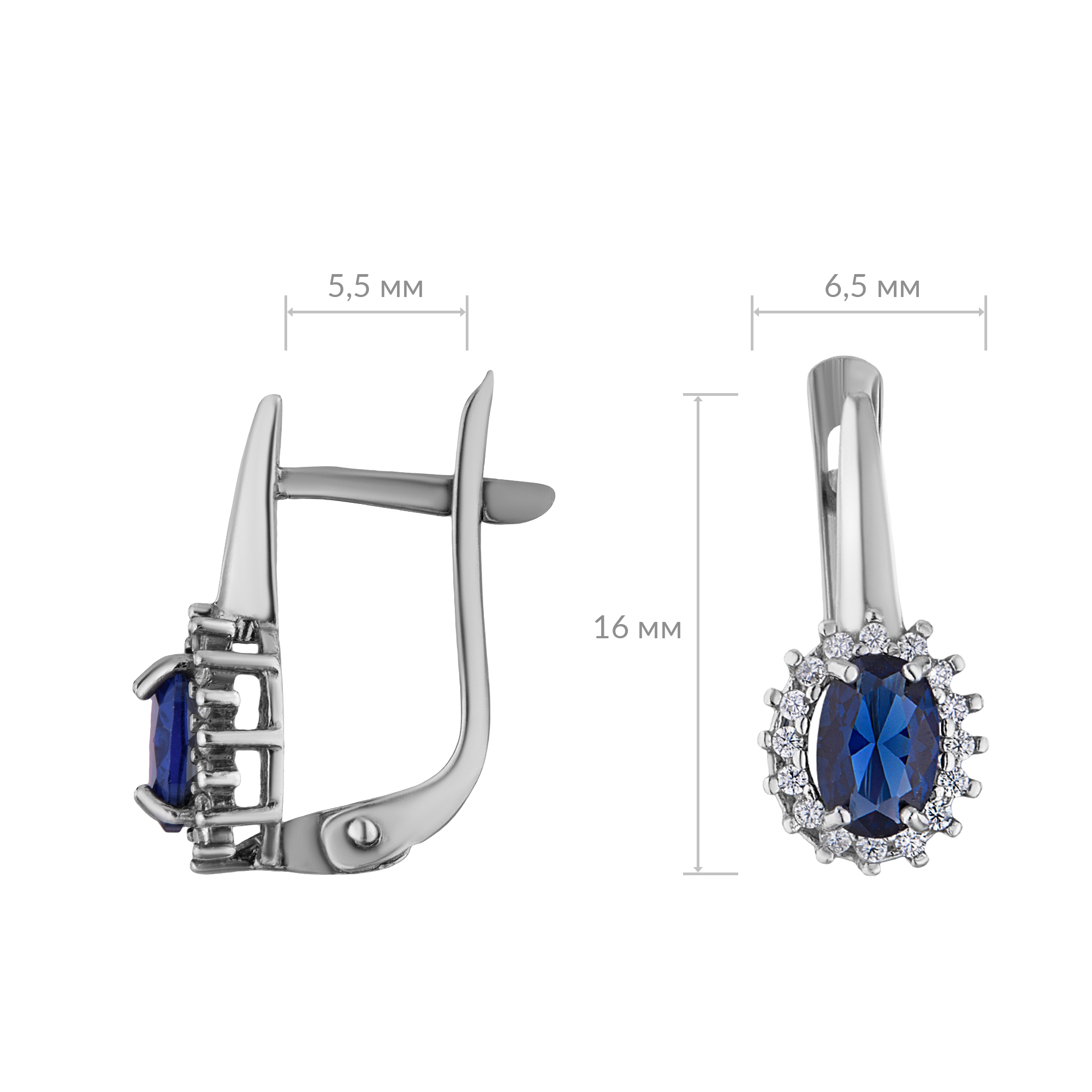 Серьги серебряные со шпинель сапфиром и фианитами арт. 2726923/9шс