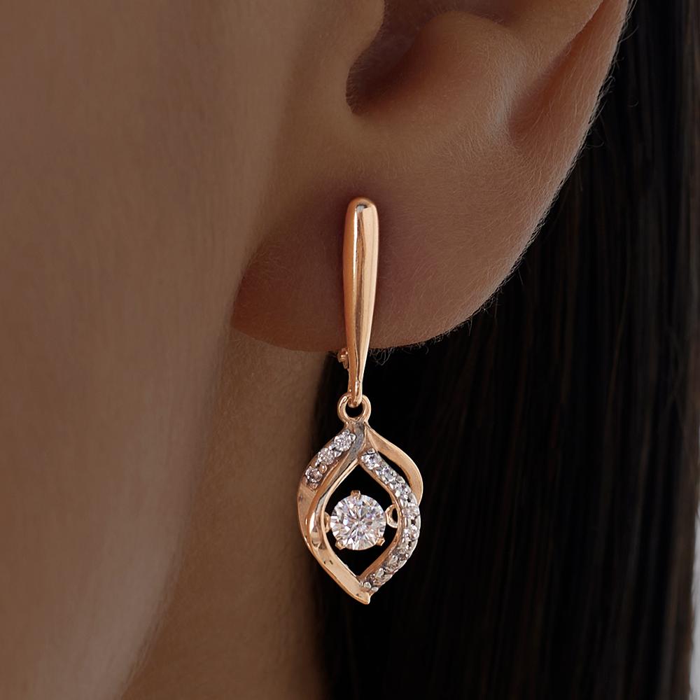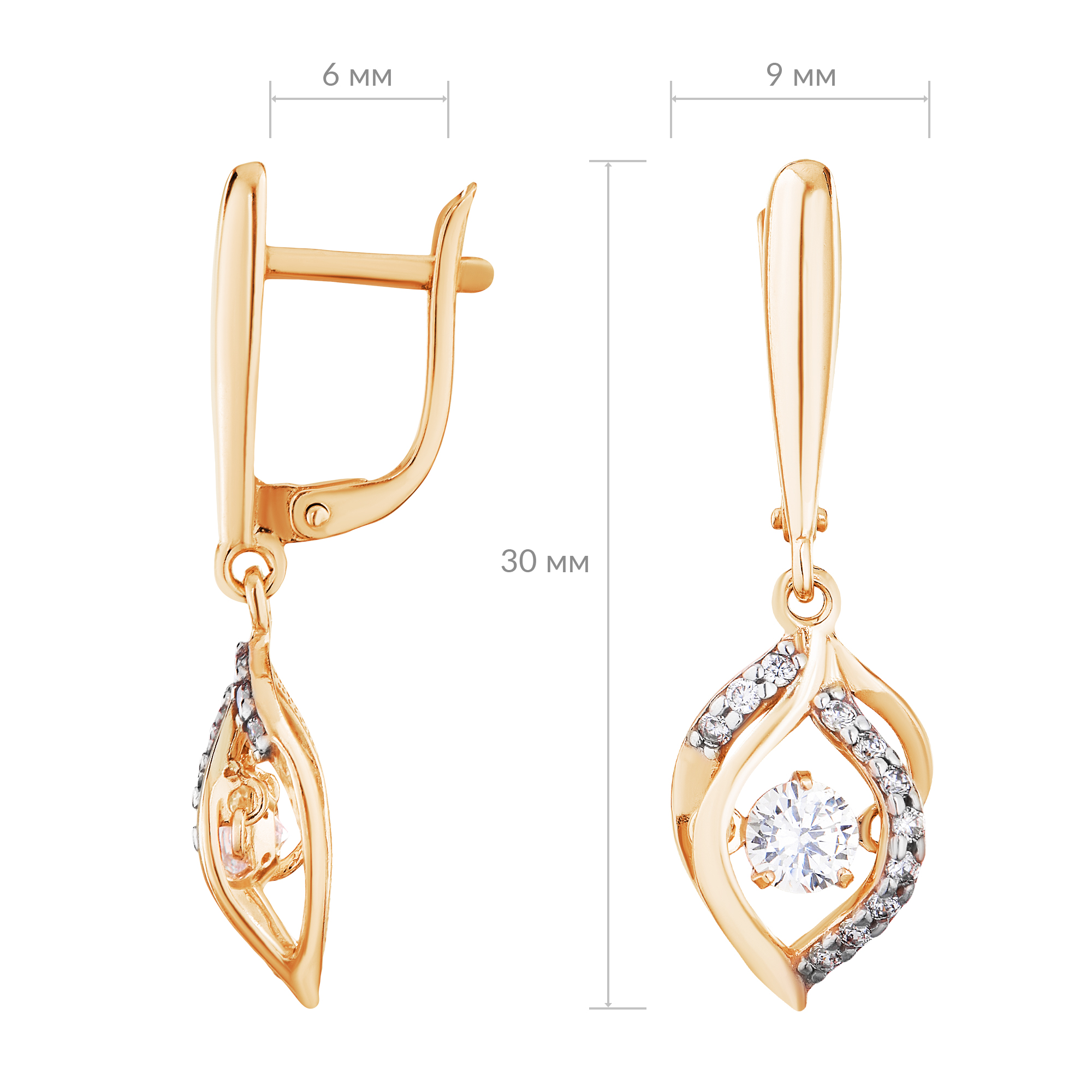 Серьги серебряные в позолоте с танцующими, качающимися фианитами арт. 2127886/9п
