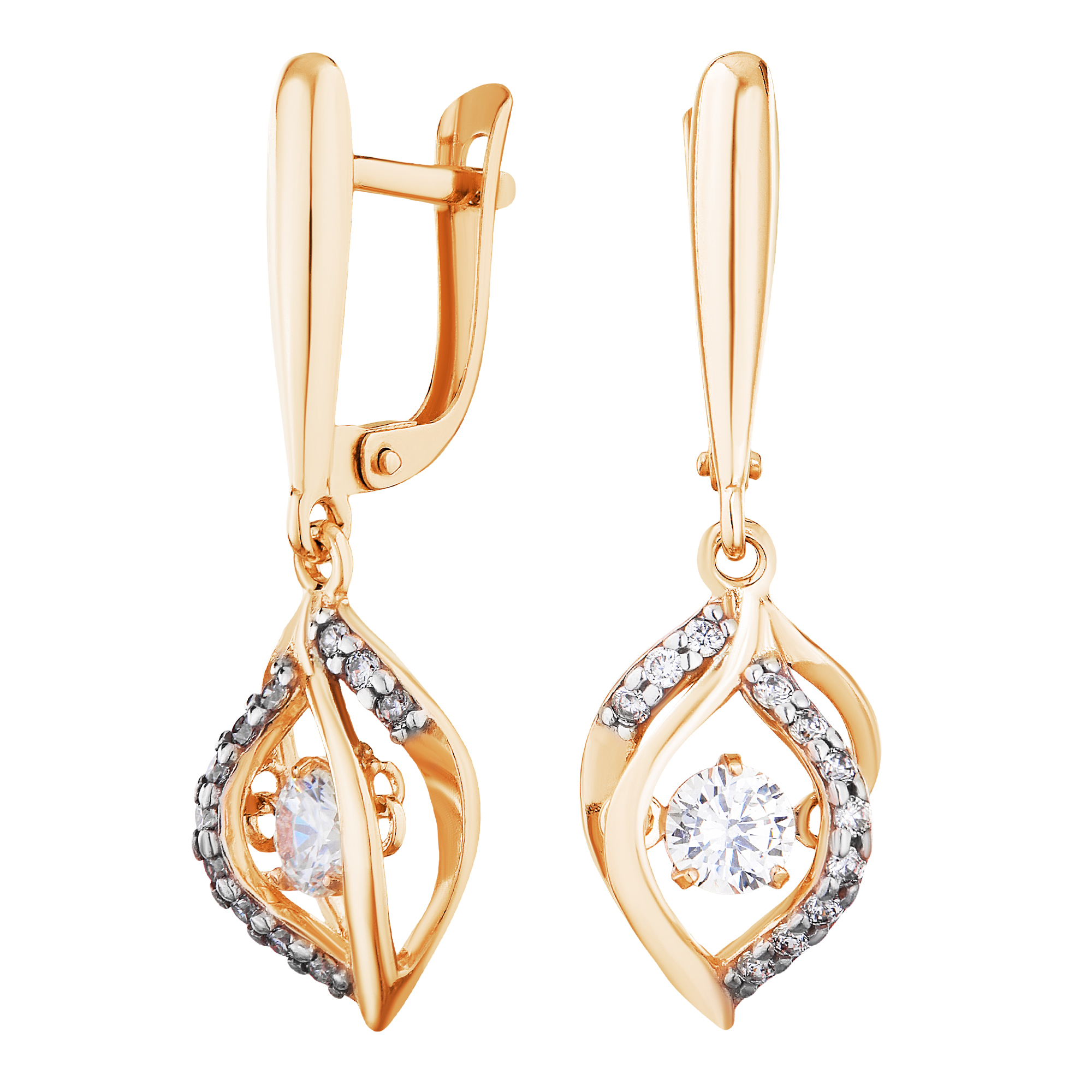 Серьги серебряные в позолоте с танцующими, качающимися фианитами арт. 2127675/92п