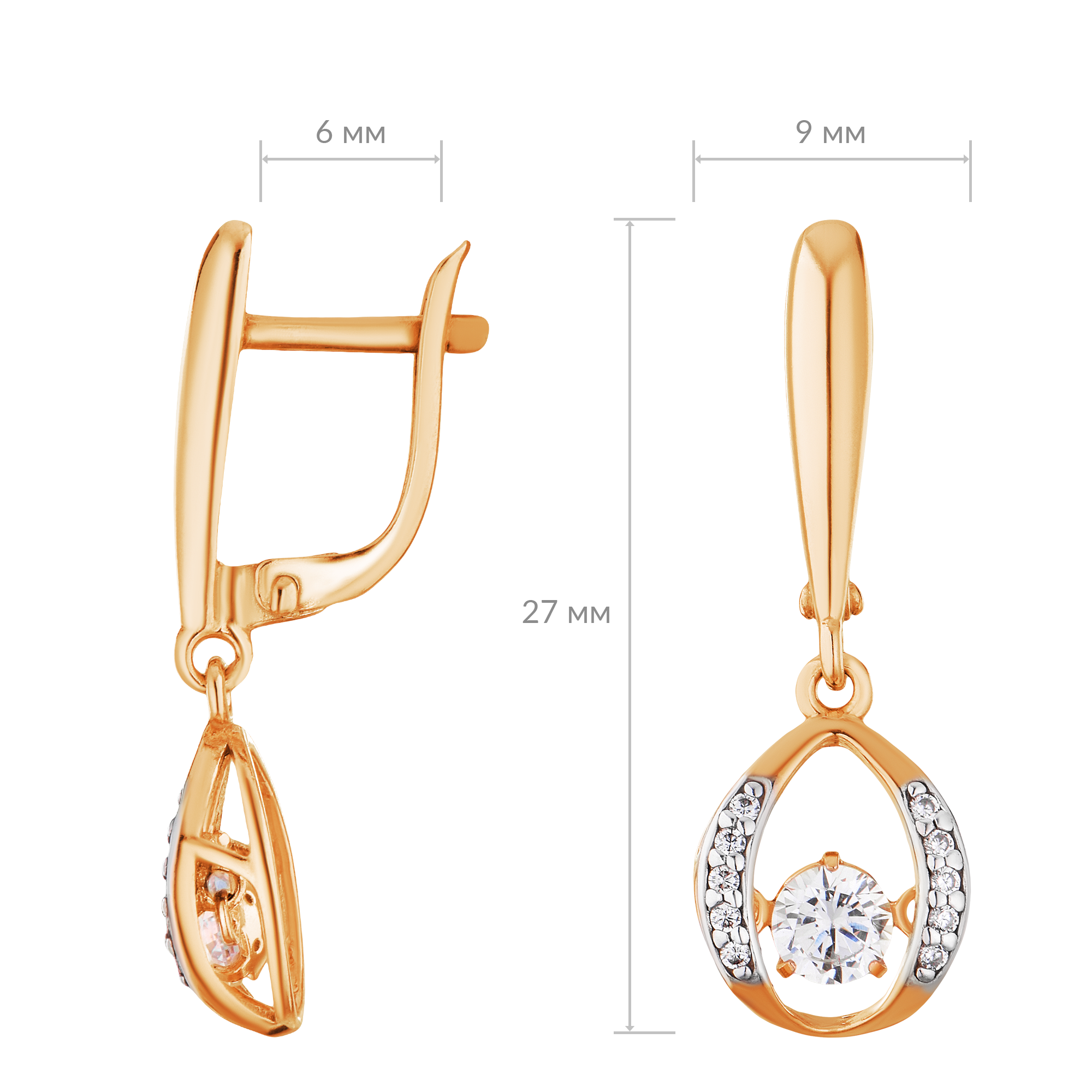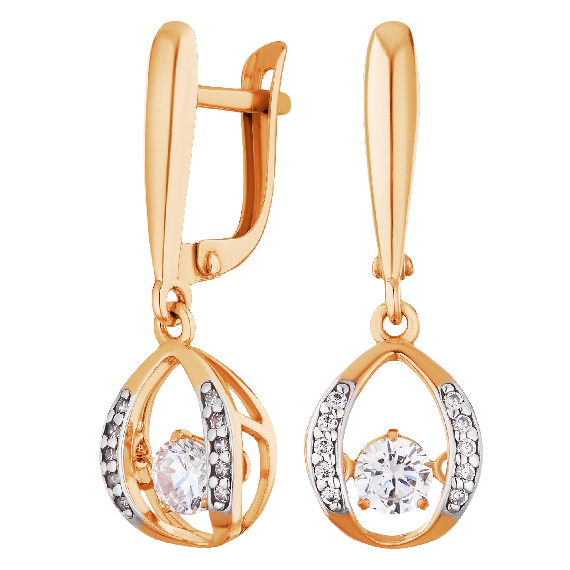 Серьги серебряные в позолоте с танцующими, качающимися фианитами арт. 2128322/91п