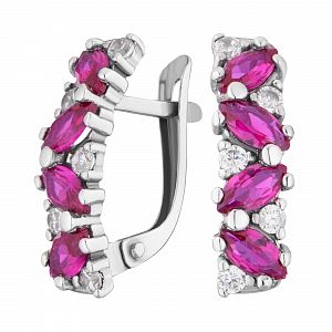 Серьги серебряные с корунд рубином и фианитами арт. 2721403/9кр
