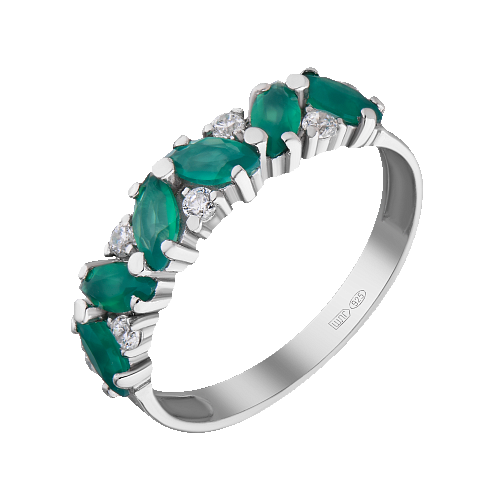 Кольцо серебряное с фианитами и хризопразом арт. 2711271/9Х