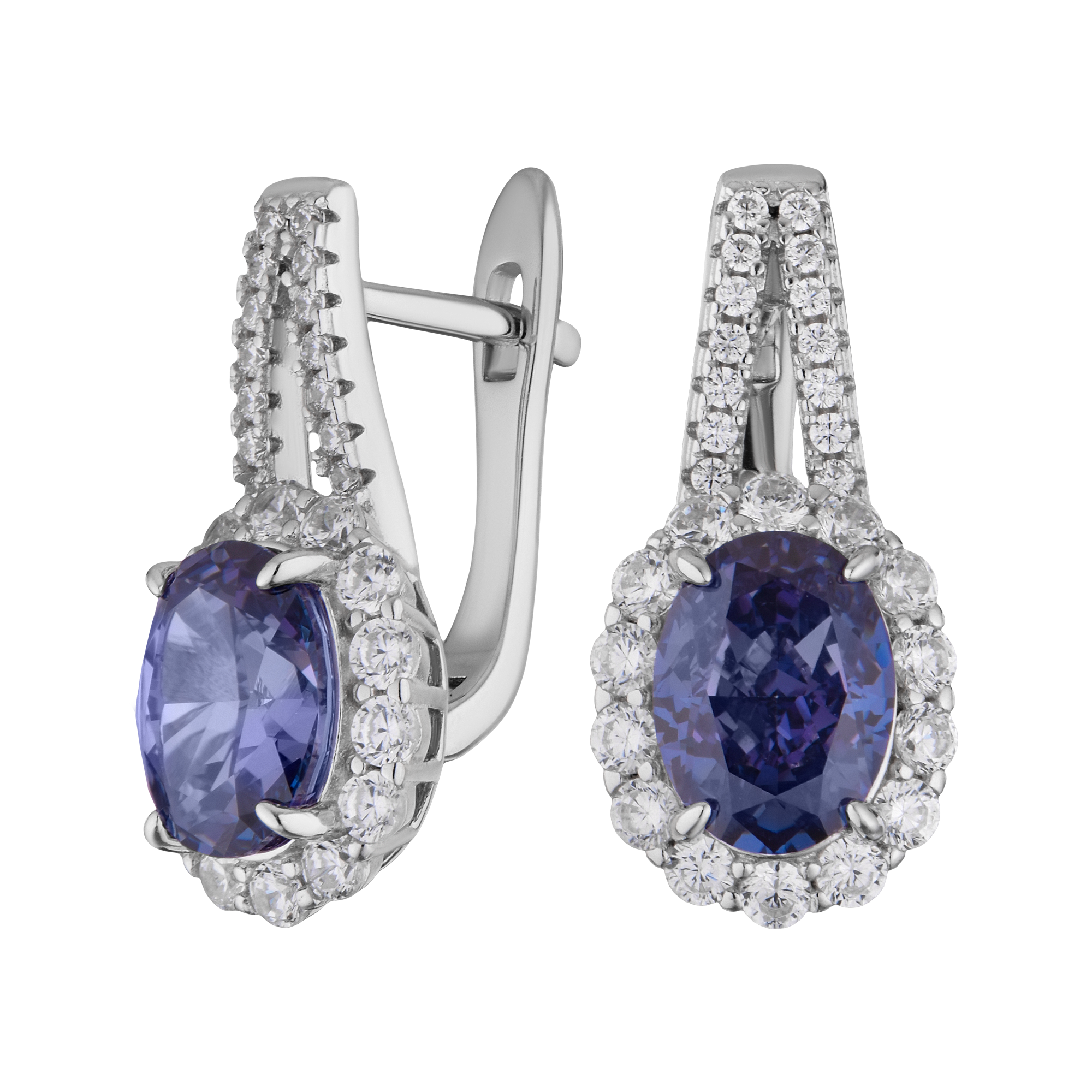 Серьги серебряные с танзанитом и фианитами арт. 27211291/92тнс