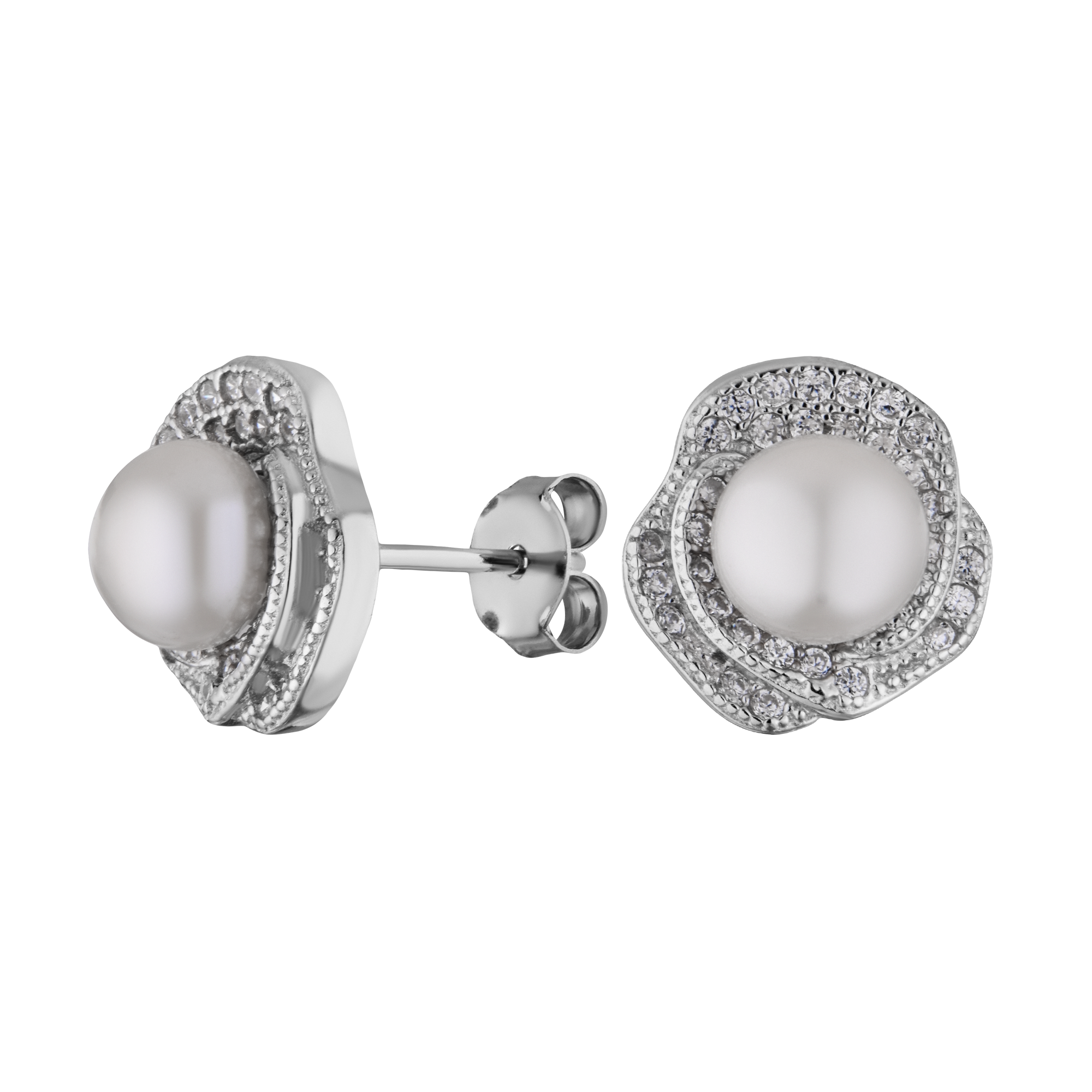 Серьги серебряные с жемчугом и фианитами арт. 21211287/9-6-6.5