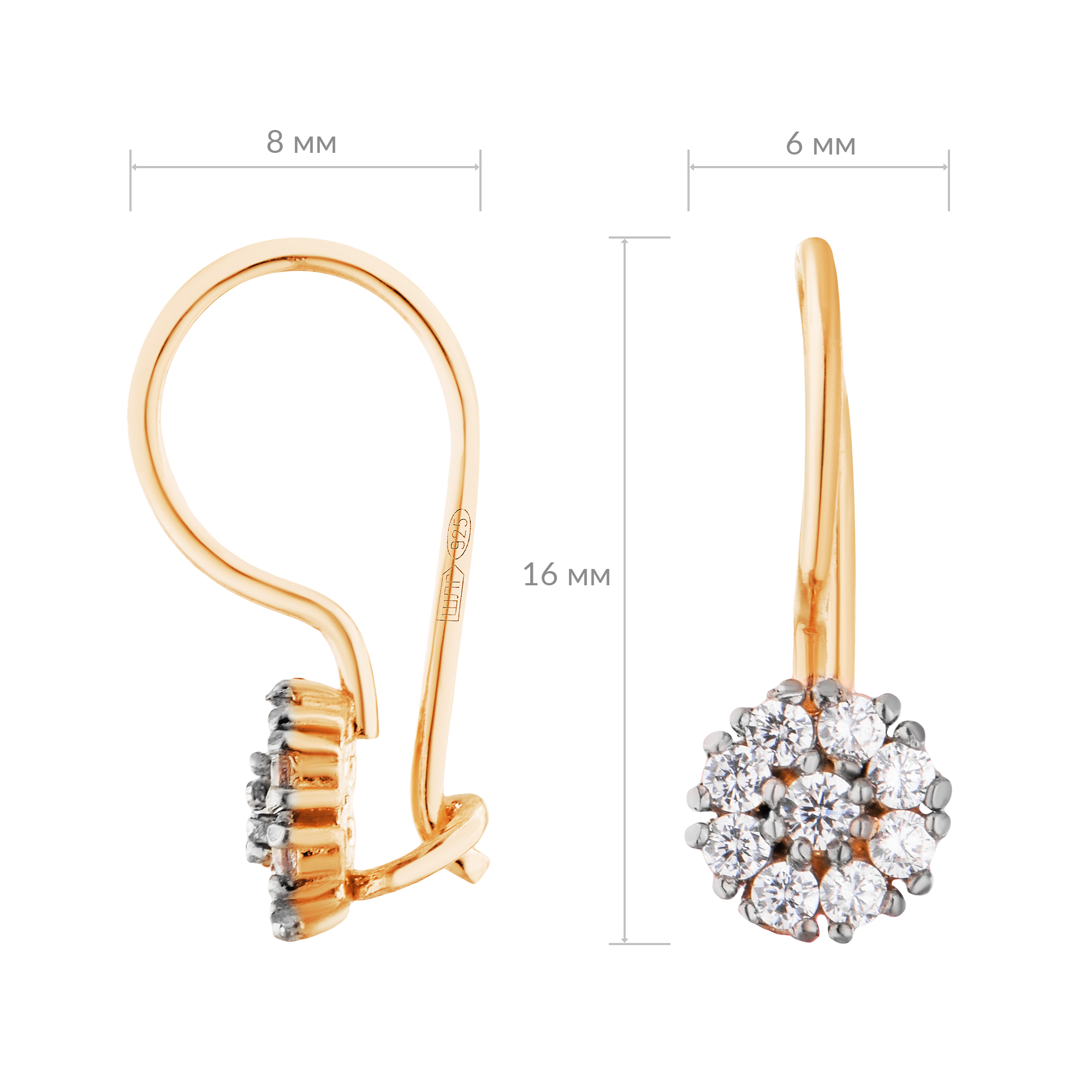Серьги серебряные в позолоте с фианитами арт. 2125931/9п