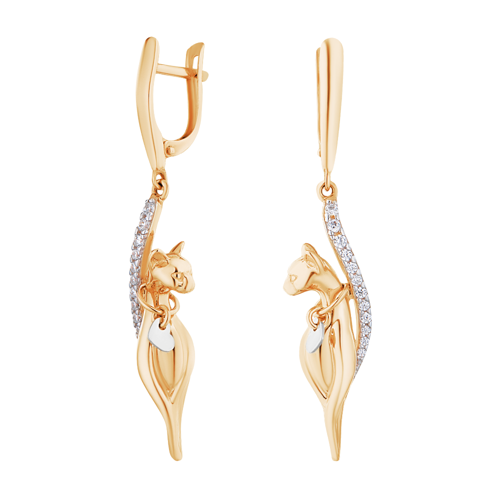 Серьги золотые с фианитами "Кошки" арт. 31210140